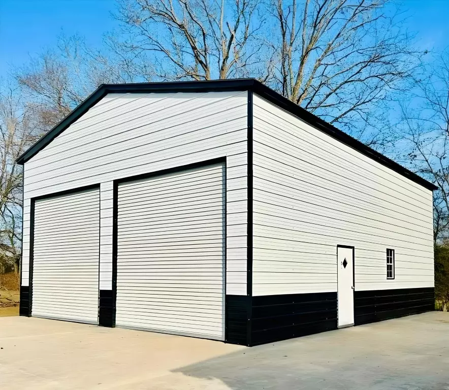Step into the world of modern metal buildings with our White Metal Barn, a perfect blend of elegance and practicality. The clean white exterior with contrasting black trim enhances the visual appeal of your property while offering superior protection against the elements. Built with top-grade materials, this barn is designed to withstand time and weather, providing a safe, durable space for storage or operational needs.