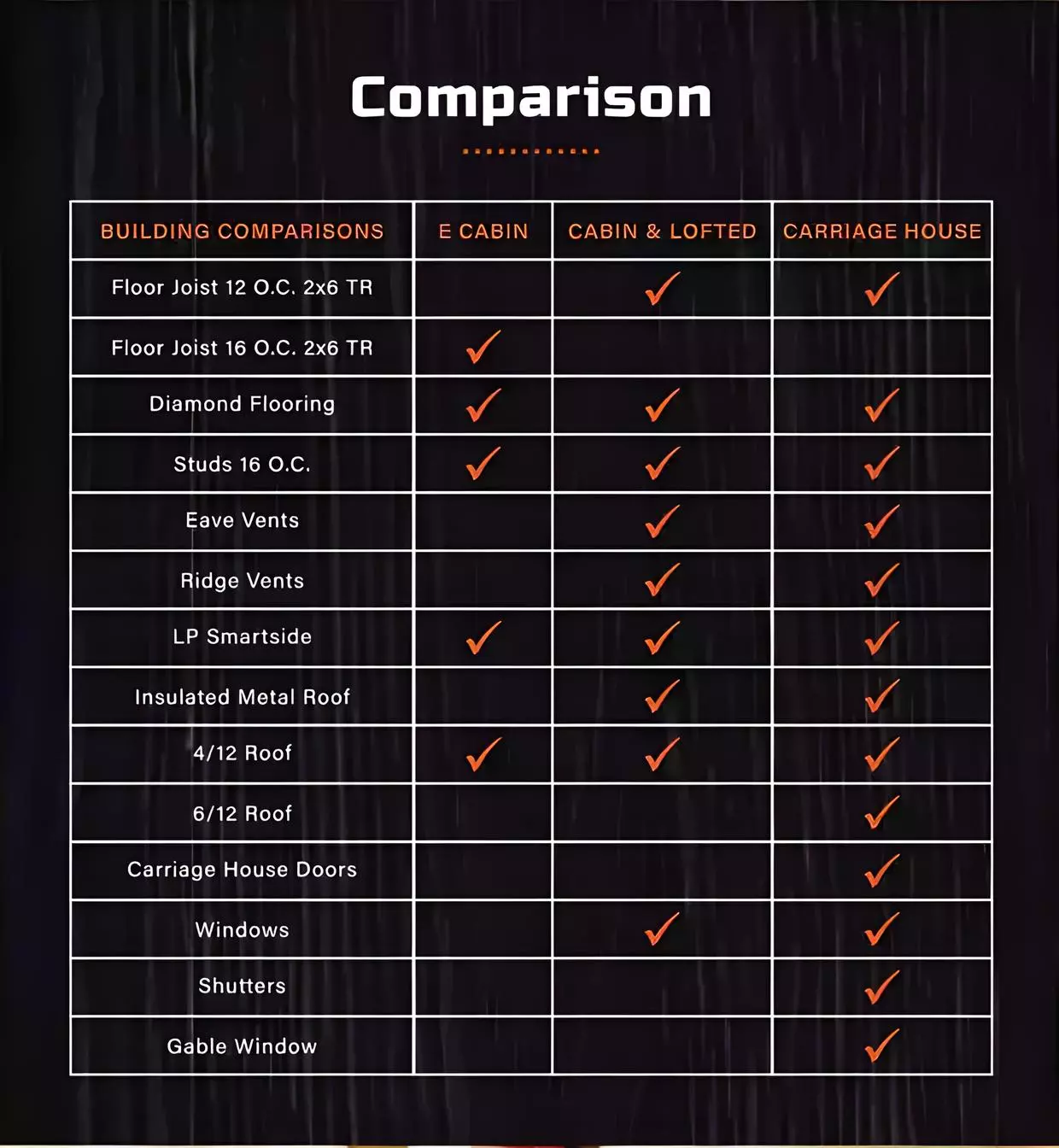 Our Cabin model is a versatile solution for those needing additional storage or living space. Whether you're looking for a storage shed, hunting cabin, or office, this model is designed to adapt to your needs. It features 55” double doors, perfect for accommodating larger items like riding lawnmowers and bulky furniture. This model also includes one 24×36 window, 6” overhangs, a 4/12 pitch roof, and vented soffit and ridge, ensuring both functionality and aesthetic appeal. Choose between a metal or painted exterior finish to match your style.
